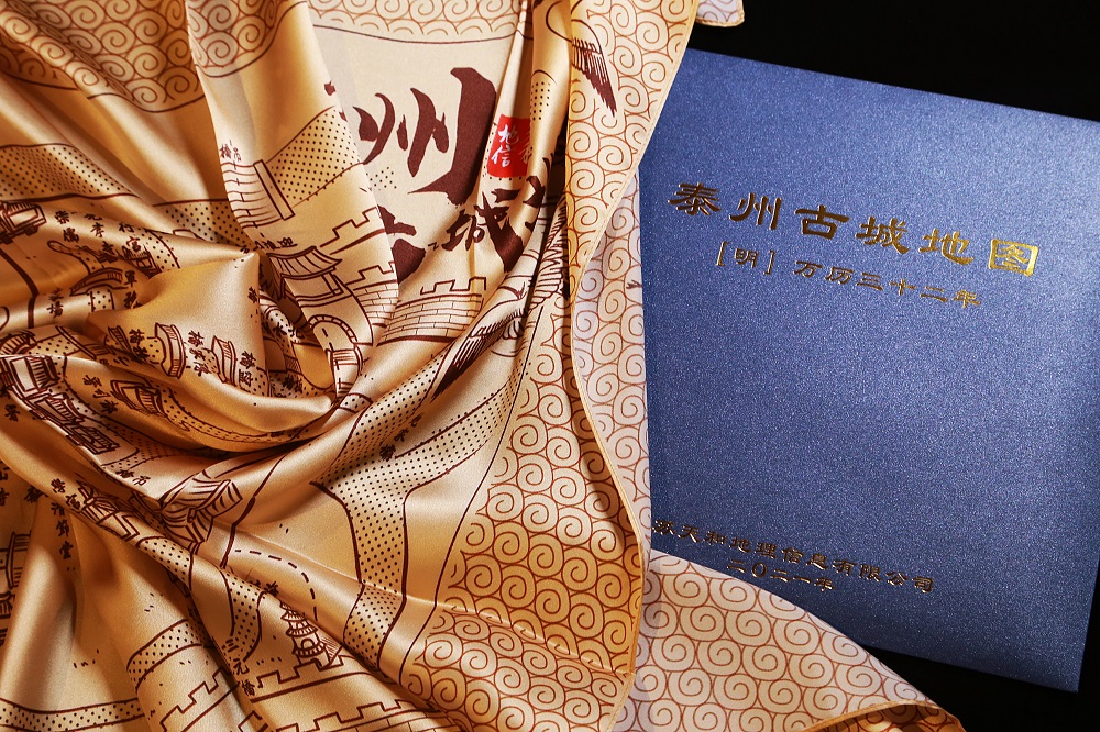 《万历泰州地图》采用体现苏式风格的优质桑蚕丝绸材质,丝网印刷,将手绘地图印在丝巾上,既方便携带,又美观实用,不仅可以作为宣传泰州旅游文化的精致伴手礼,还可视为一张宣传泰州、推介泰州的文化名片。
